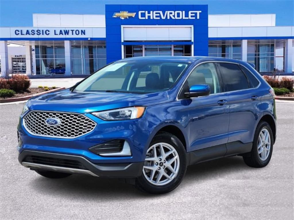 CARFAX One-Owner. Blue Metallic 2023 Ford Edge SEL AWD 8-Speed Automatic EcoBoost 2.0L I4 GTDi DOHC Turbocharged VCT AWD.
